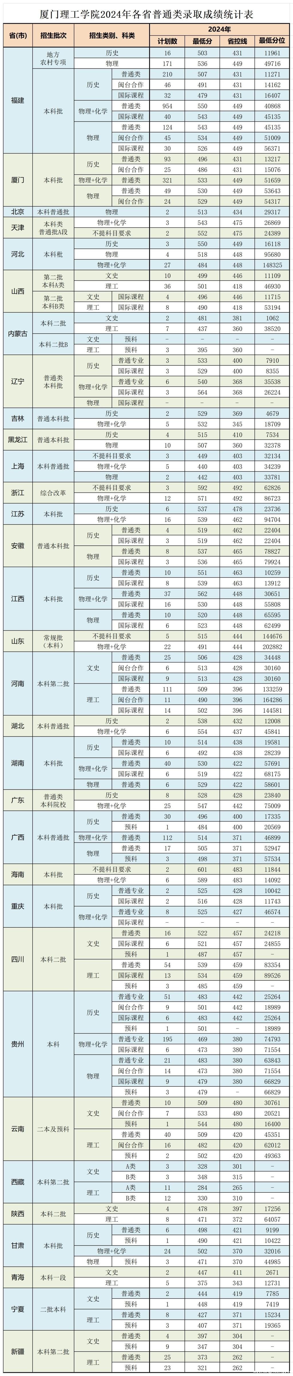 2024年普高招生普通文理类分省分专业录取分数统计